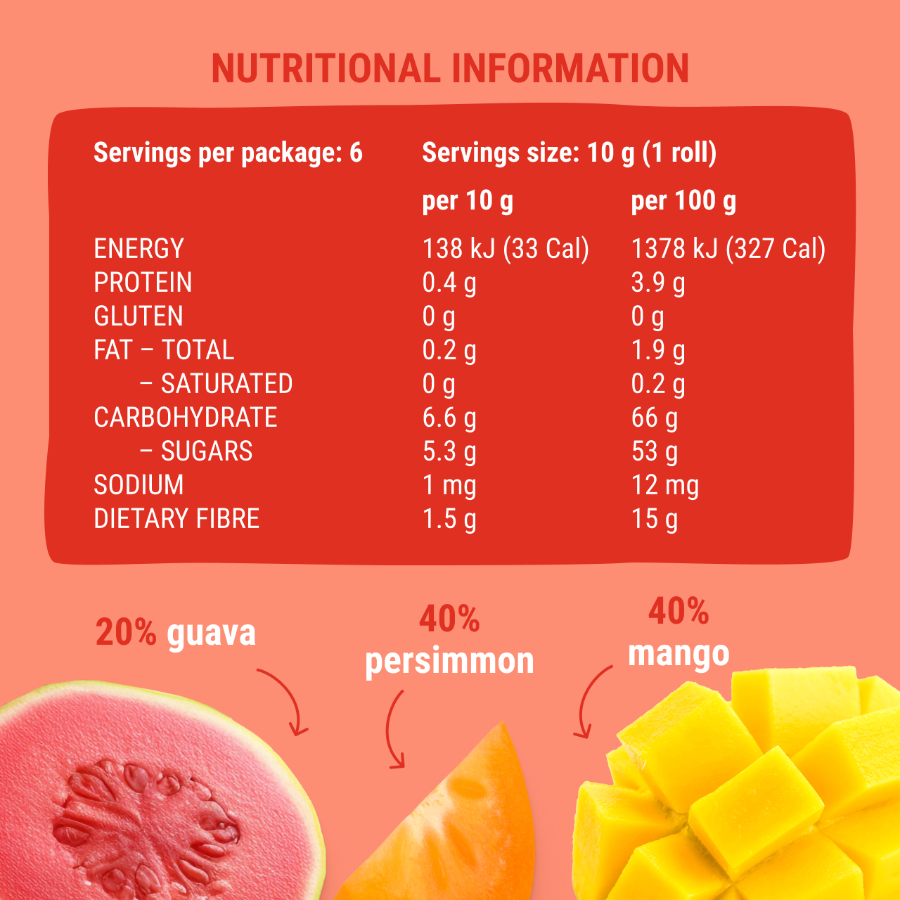 MANGO-PERSIMMON-GUAVA TROPICAL FRUIT ROLLS