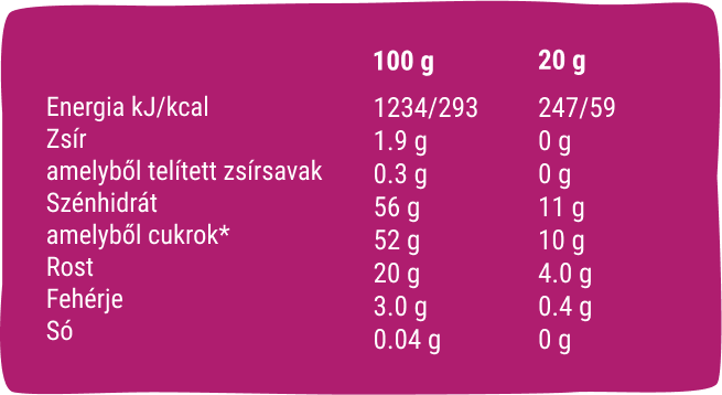 Hűvös, száraz helyen, hőtől védve tárolandó. Felbontás után 3 napon belül fogyaszd el.