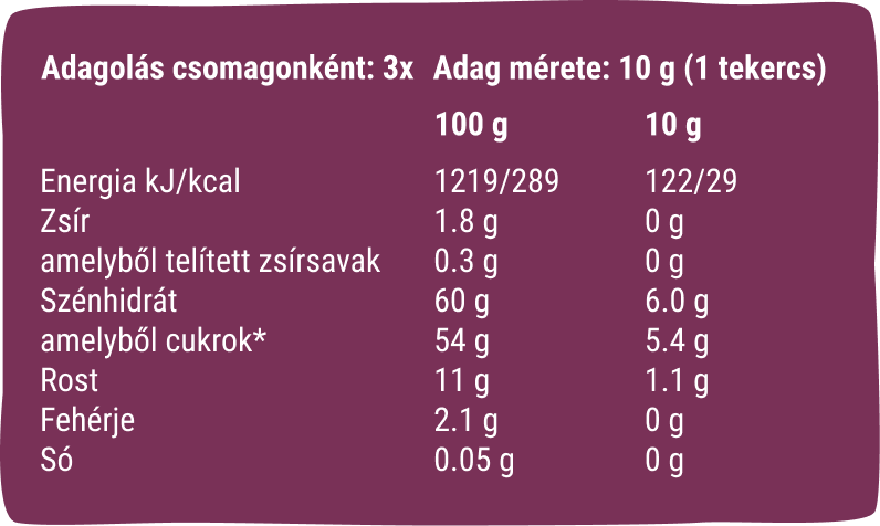 A gyümölcs tekercsek természetes és tápláló finomságok valódi gyümölcsből – nem tartalmaznak hozzáadott cukrot, tartósítószert, mesterséges színezéket vagy aromát. Gyerekeknek és felnőtteknek is egészséges nassolnivaló – iskolában, munkában vagy útközben.