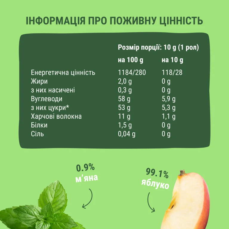 Фруктові роли “Яблуко-М’ята” 30г