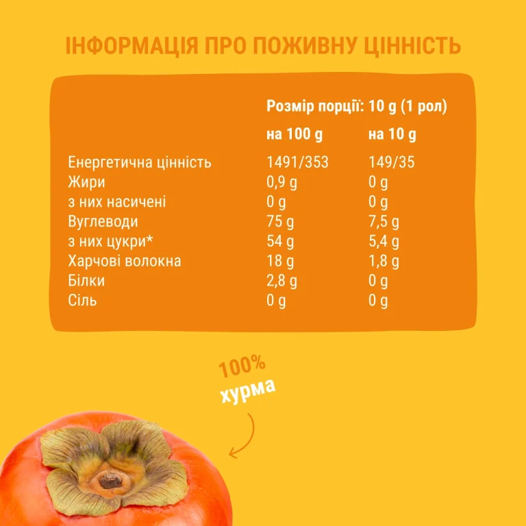 Роли виготовлені з фруктів і ягід без доданого цукру. Вони не містять основних алергенів: арахісу, горіхів, молока, яєць, сої, пшениці, риби, молюсків і кунжуту. Без глютену та штучних домішок. Всього 2-3 інгредієнти і нічого зайвого!