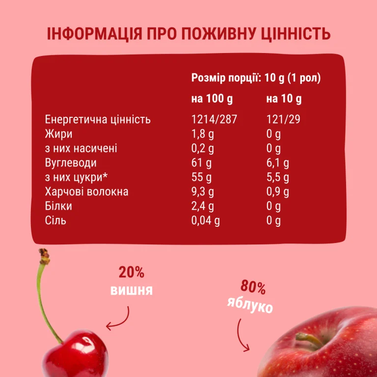 Фруктові роли “Яблуко-Вишня” 60г