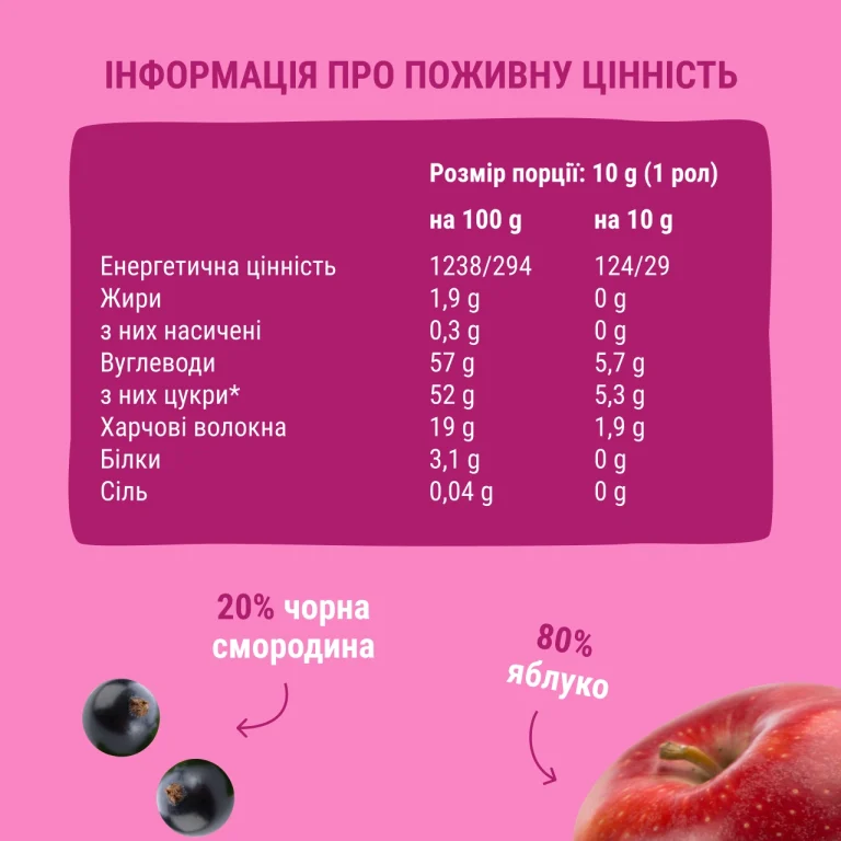 Фруктові роли “Яблуко-Чорна смородина” 60г