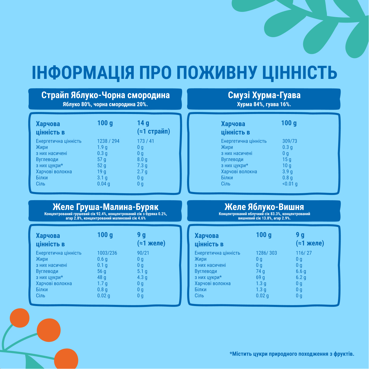 Жодних концентратів чи сиропів — лише фрукти.