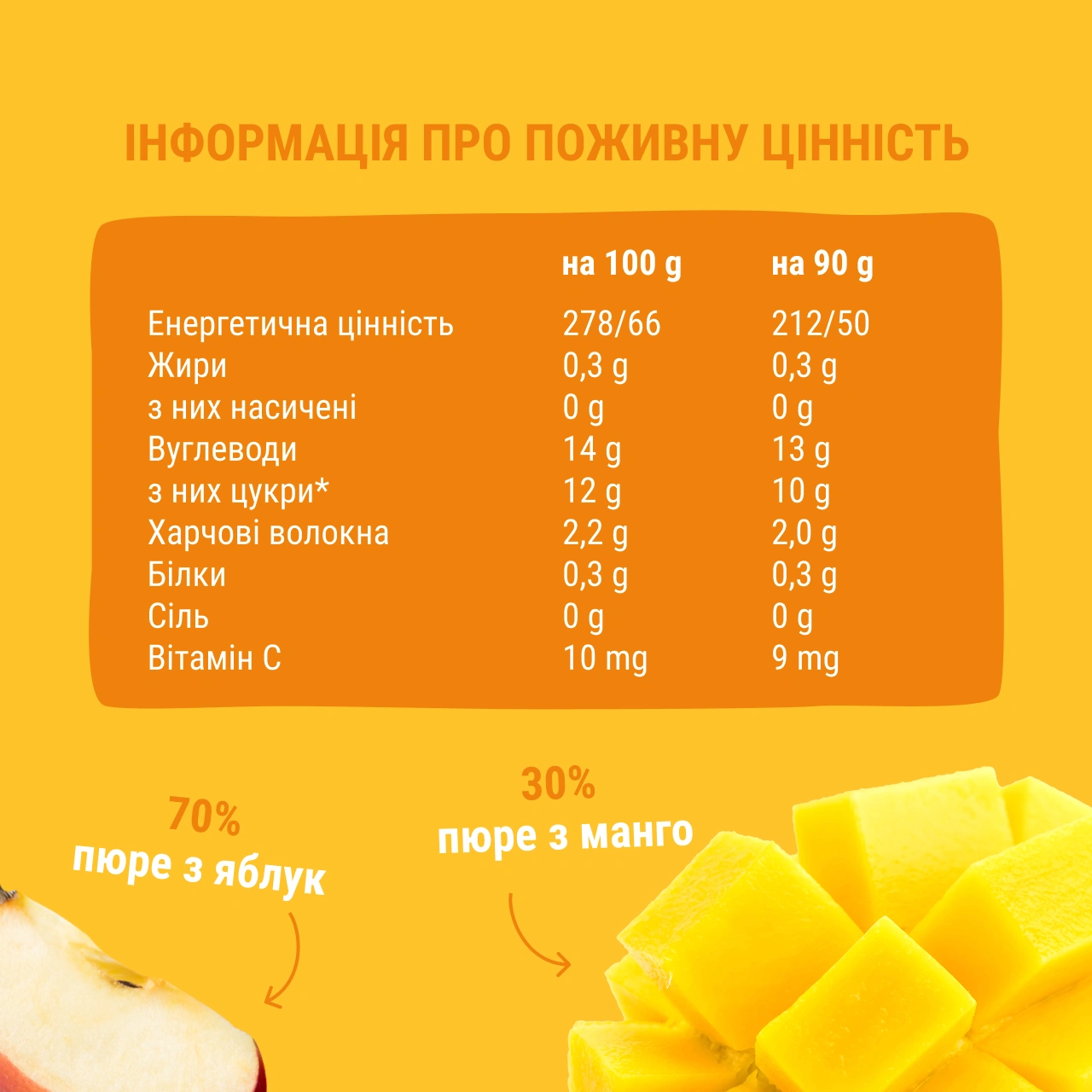 Склад: пюре з яблук 70%, пюре з манго 30%, вітамін С.