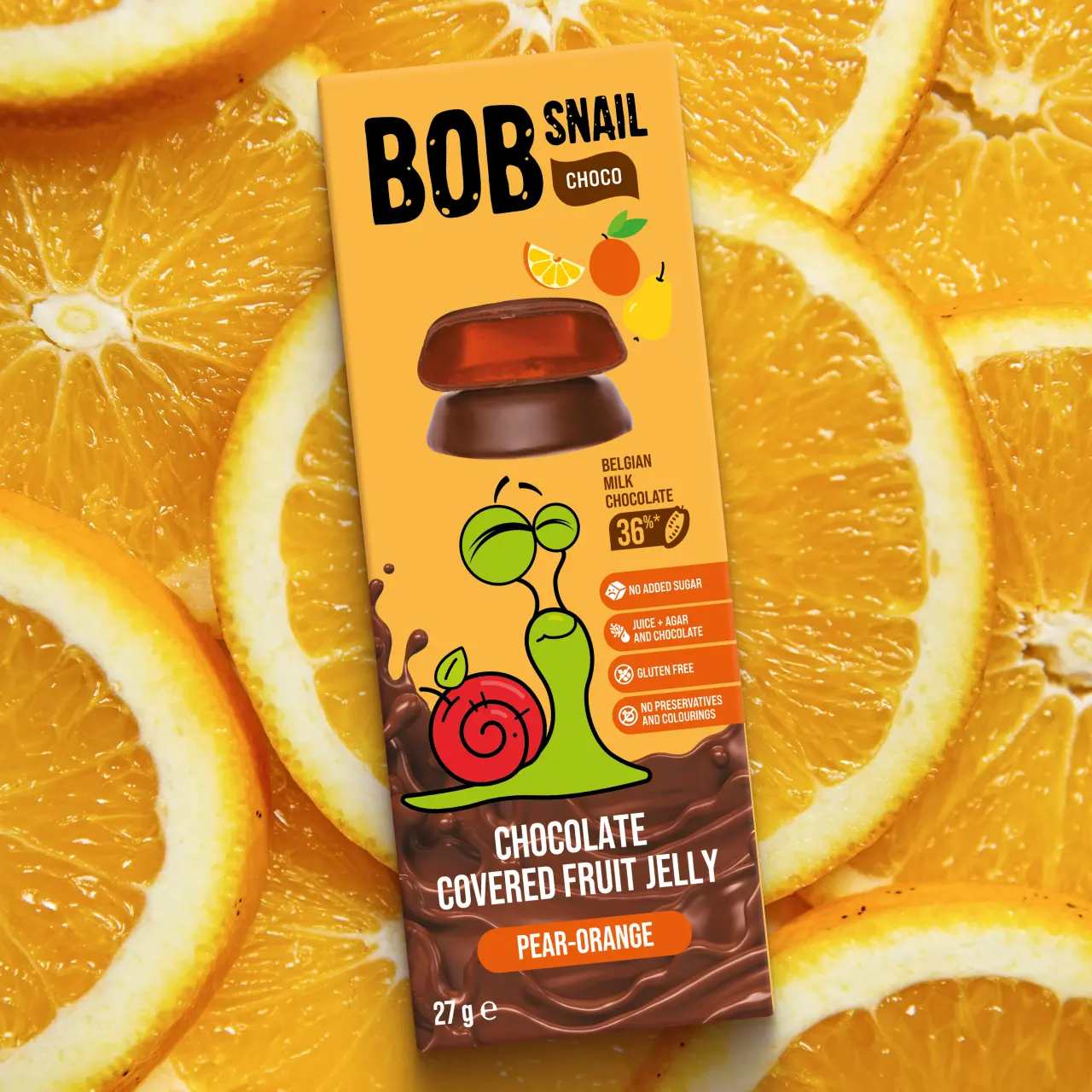 Фруктовий мармелад, вкритий бельгійським шоколадом без доданого цукру, консервантів, барвників, глютену та желатину. Має пружну і водночас м’яку текстуру та яскравий фруктовий смак із шоколадними нотками.