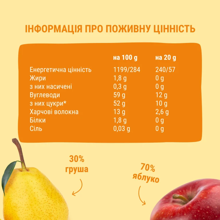 Склад: яблуко 70%, груша 30%.
